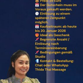 🎉 Neujahresaktion 2026 – Entspannt ins neue Jahr starten! 60 Minuten Thaimassage-Gutschein für nur 39 € ✨ Verschenke …