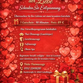 💖 Monat der Liebe – Schenken Sie Entspannung 💖 Überraschen Sie Ihre Liebsten mit einem besonderen Gutschein 🎁 …